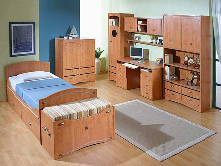 Мебель для детской серия «Наутилус», ф-ка «Прагматика», Калининград. Кровать – 8.282 руб., шкаф для книг – 11.274 руб., сундук - 9.358 руб., стол письменный – 9.894 руб.