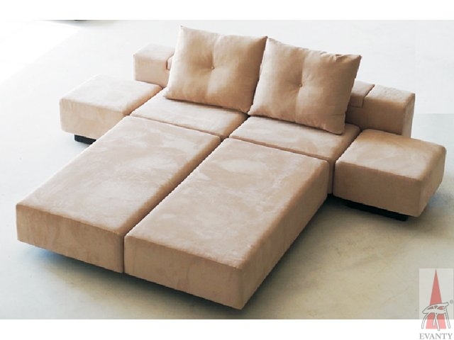 Поэтому диван имеет сотни вариантов комбинаций. Множество вариантов компоновки частей дивана позволяет использовать его, например, как угловой диван с пуфом, кровать с идеально ровным спальным местом, две отдельно стоящих софы или традиционный прямой диван.
