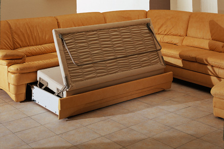 КАЛИНКА-39 Модель может быть оснащена уникальными немецкими системами трансформации «Stawett» или «Lusch» – где спальное место очень просто и легко выкатывается, превращая диван в удобную кровать. Механизмы комплектуются дополнительным «матрацом-покрывало». Электрошезлонг с изменяемым положением сиденья выполнен с вибромассажером. Пульт управления находится в подлокотнике. Коробка пульта управления выполнена из натурального ясеня. Электрошезлонг может быть оснащен убирающимся за спину подголовником. Средний диван может быть выполнен в двух вариантах: 1) офисный 2) с бельевой коробкой из белого ламината. Кресло угловое может быть простым или с поворотными спинками. Поворотная спинка – применяется механизм «Растомат», спинку углового кресла можно расположить в нужном положении при помощи 10 уровней фиксации для лучшего комфортного отдыша. Порядок раскладывания: ухватившись за боковую часть, потянуть ее на себя до нужного положения. Порядок складывания: потянуть спинку до упора, отвести ее назад. Кресло одиночное может быть как офисным, так и с коробкой для белья. А так же одиночное кресло может быть оснащено убирающимся за спину подголовником и выдвигающейся подставкой под ноги. В комплекте имеется стеклянный столик с вращающимся мягким сиденьем. В модель «Калинка 39» входит пуф-кресло с откидной спинкой. Пуф легко превращается в удобное кресло с высокой спинкой. Мягкие элементы выполнены из высокоэластичного формованного пенополиуретана (ЭФППУ) повышенной комфортности. Металлическая пружина-змейка устанавливается на каркас под мягкие элементы, обеспечивая комфорт и надежность.